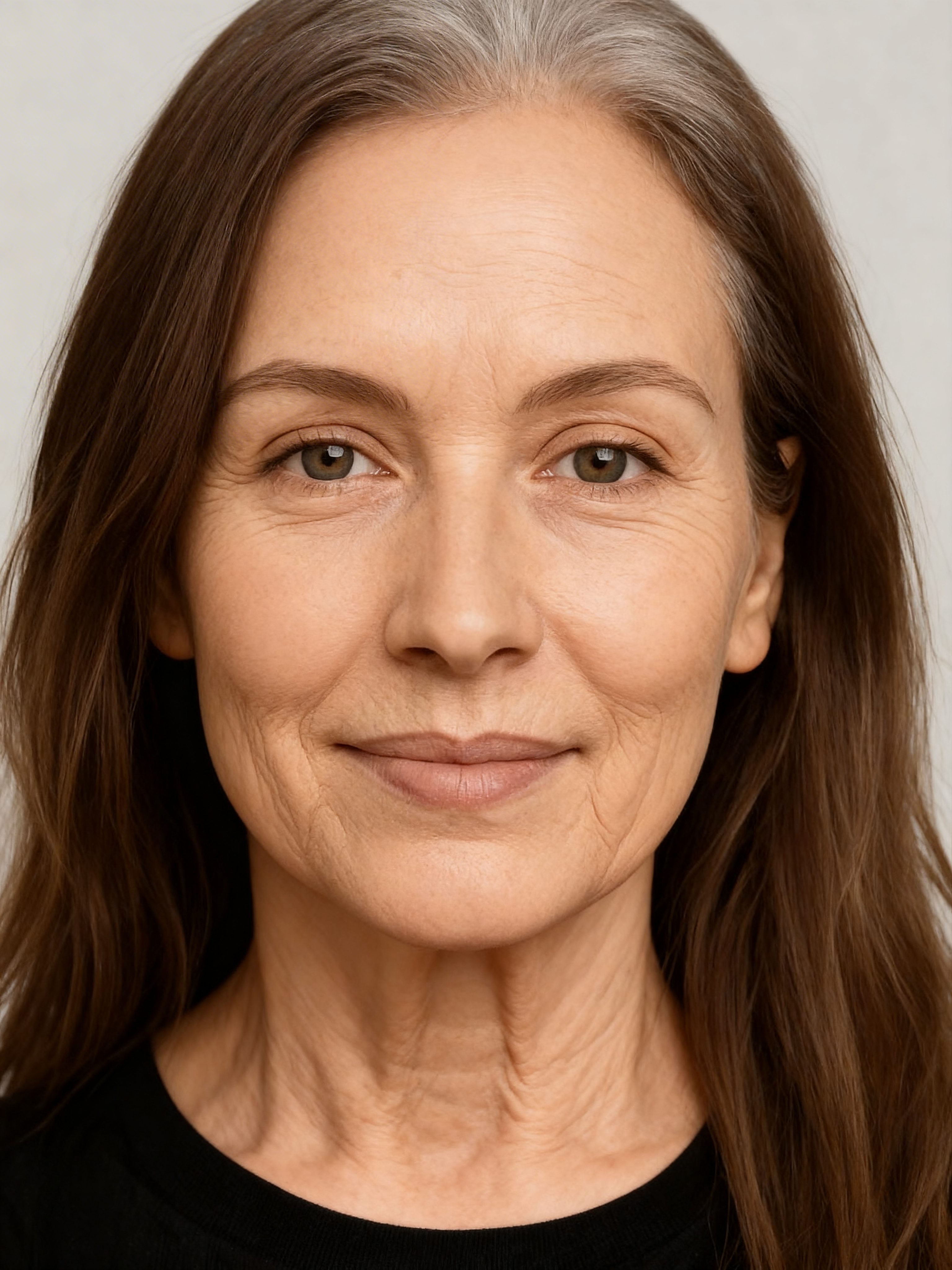 AI focuses on facial aging details such as skin texture, wrinkles, and mature features.